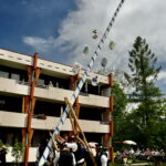 Nach verschiedenen Darbietungen der Schnalzer und der Kindergruppe wurde „das Stangerl“ mit viel Muskelkraft und Elan mit „Hauruck Rufen“ der Senioren von den Trachtlern traditionell mit Schwaiberl in die Höhe gestemmt. Die Huber Musi untermalte die Rastpausen musikalisch. Nachdem der Baum an seinem Platz befestigt war zeigte die Aktivengruppe der Alt Rosenheimer noch das Muiradl und tanzten gemeinsam mit rüstigen Senioren den Webertanz. Die Kinder- und Jugendgruppe zeigte noch den Kikeriki und das Bauernmadl die Plattlergruppe die Ambospolka und den Langschottisch. Mit großen Applaus wurden die Mitwirkenden von den begeisterten Senioren verabschiedet.