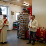 Fotos: Rainer Nitzsche – Diakon Günter Schmitzberger und Wolfgang Sattelberger bei der Segnung in der Backstube von Rohrdorf
