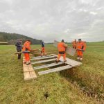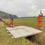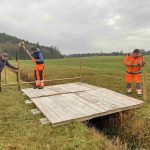 Foto: Hötzelsperger – Priener Bauhof erstellt für die Langlaufloipe eine Brücke über den Stettener Bach.
