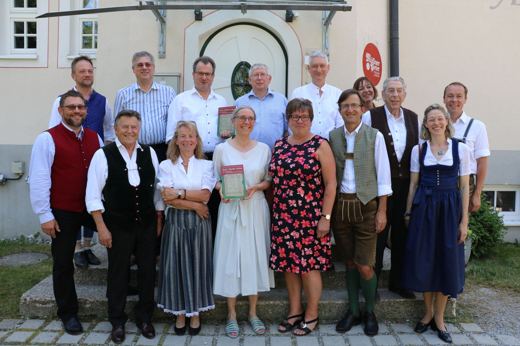 Die Autoren und Verantwortlichen für das neueste Buch zum Müllner Peter. Dr. Margot Hamm vom Haus der Bayerischen Geschichte (erste Reihe vierte von links) und Bürgermeisterin Monika Schmid (erste Reihe fünfte von links) stellen die Autoren des Buches, die Verantwortlichen vom Freundeskreis Müllner Peter von Sachrang, vom Müllner Peter Museumsverein und von der Gemeinde Aschau bei der Präsentation in der Alten Schule vor.