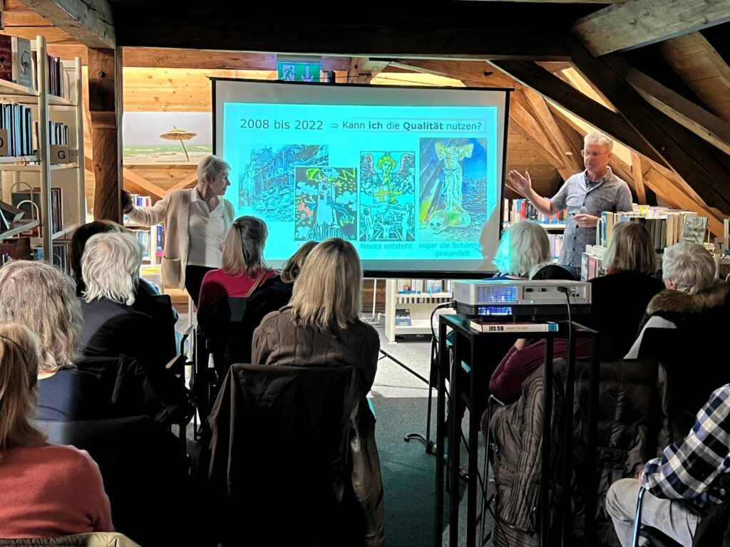 (v.l.n.r.) Vortrag in der Bücherei Prien: Hermine-Marie Zehl, Soziologin, NLP-Trainerin, geprüfte psycholog. Astrologin und Buchautorin, und Joachim Wurster, Dipl.-Ingenieur und tiefenpsychologisch orientierter, ganzheitlicher Astrologe sowie Mitglied im Deutschen Astrologen-Verband, bieten kompetente astrologische Unterstützung in diesen Zeiten.