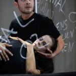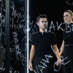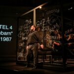 Fünf schwarz gekleidete Schauspieler (Kostüm: Anna Sünkel) ohne feste Rollen – KS Britta Bayer, Georg Clementi, der zu disharmonischen Streicherakkorden auch live für melancholische Gitarrenklänge (Musik: Vivan Bhatti) sorgte, Larissa Enzi, Roman Kanonik und Aaron Röll – agierten (Dramaturgie: Clara Bender) auf der Bühne (Anne Ehrlich) in und um einen Glaskasten, dessen Teile auf der Drehbühne in jedem der 12 Kapitel anders angeordnet wurden mit einer schwarzen Liege, einem Schreibtisch und einem Stuhl als Requisiten. Eine Kamera projizierte das Geschehen an die Seitenwand – manchmal gezielt nur eine Person – als Moderator oder Nachrichtensprecher? Aus den wichtigsten Passagen der 12 Kapitel im Roman hatte Nuran David Calis die Texte ausgewählt, die je nach Bedeutung von einzelnen gesprochen oder – auf ein Atemgeräusch hin – im Chor hinausgeschrieen wurden. Choreographischer Ausdruckstanz bildete den  Gegenpart zum Sprechtheater. Was zu Beginn auf die Glaswände geschrieben worden war – Fakten, Daten, Gedanken und Geschehnisse – und durch die Drehbühne aus verschiedenen Blickwinkeln zu sehen war, wurde zum Schluss weggewischt. Dazu der Text, während sich alle in slow motion auf den Boden legten: „Das Versagen der Regierung Netanyahu war für alle im Land offensichtlich“ und: „Die Tore von Gaza lasten auf unseren Schultern und auf unseren Seelen“.