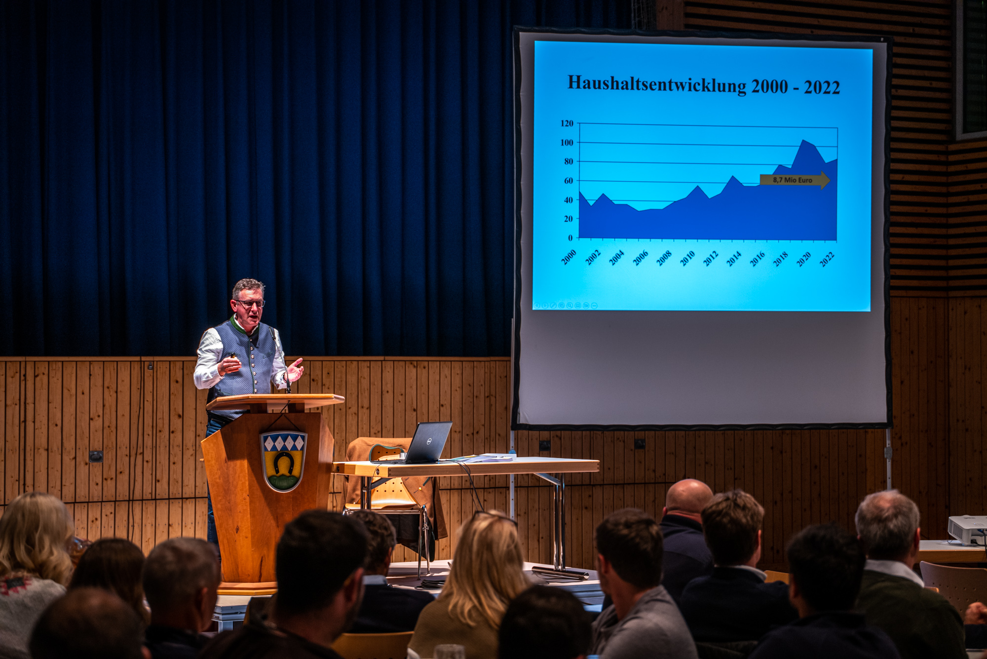 Bürgermeister Georg Huber erläutert den Haushalt der Gemeinde