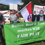 Die Initiative “Land-schafft-Verbindung” (LsV) nutzten den Besuch von Bundeskanzlerin Angela Merkel auf Herrenchiemsee, um ihr bei der Anfahrt die großen Sorgen der Landwirtschaft aufzuzeigen. Wie Josef Hofmayer aus Rimsting als Mitorganisator der LsV-Aktion nach Ende der Aktion mitteilte, wurden von seinen Leuten rund 700 Schlepper gezählt, die links und rechts der Straße von Bernau bis Prien zum Teil mit Transparenten aufgestellt waren. “Leider kam es zu keinem persönlichen Gespräch mit der Bundeskanzlerin und mit dem Ministerpräsidenten” – so Hofmayer, der umso dankbarer war, dass sich der stellvertretende Bayerische Ministerpräsident Hubert Aiwanger ganze 30 Minuten Zeit nahm, dabei eine Leberkäs-Semmel genoß und in die Aktions-Kasse 20 Euro spendierte. Auch die Bayerische Landwirtschaftsministserin Michaela Kaniber suchte das Gespräch mit den Vertretern von “Land-schafft-Verbindung” und mit den friedlich demonstrierenden Bauern. Zusätzlich zu den Schlepperfahrern machten sich weitere Bauern mit Autos und Radeln auf den Weg nach Prien, um dabei zu sein.