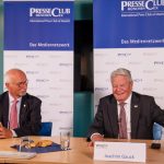 Der Besuch von Bundespräsident a.D. Joachim Gauck am Donnerstag, 14. Oktober, um 15.30 Uhr war einer der Höhepunkte im diesjährigen Programm des PresseClubs, das durch die Corona-Beschränkungen leider stark belastet wurde.