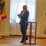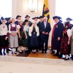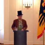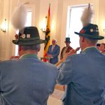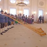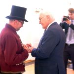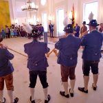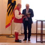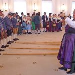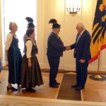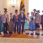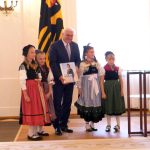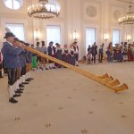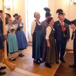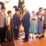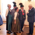 „90 Jahre Deutscher Trachtenverband“ waren Anlass für Bundespräsident Frank-Walter Steinmeier, 120 Trägerinnen und Träger unterschiedlichster Trachten aus allen Landesteilen der Bundesrepublik zu einem Empfang im Großen Saal von Schloss Bellevue einzuladen. Bei seiner Begrüßung sagte er: „Die Vielfalt der Trachten sind ein Schaufenster der deutschen Kultur und Landsmannschaften, außerdem tragen die Trachten zum Selbstbewusstsein und zur Gemeinschaft bei, ich danke für Euer Ehrenamt und freue mich auf einen beschwingten nachmittag“. Das anschließende Programm erläuterte Knut Kreuch als Präsident des Deutschen Trachtenverbandes unter anderem mit den Edelweiß-Alphornbläsern aus Lechbruck, mit Romeo Kreuch aus Wechmar in Thüringen auf dem europäischen Dudelsack, mit Peitschenknallern aus Hessen, mit Mundartbeiträgen aus Niedersachsen und Schleswig-Holstein sowie mit Tänzen der Deutschen Trachtenjugend. In Gedicht-Form erinnerte Knut Kreuch an die wechselhafte Geschichte des Deutschen Trachtenverbandes, unter anderem an die Gründung in wirtschaftlich schwierigen Zeiten im Jahr 1929, an die Neugründung nach dem Krieg in München, an die Zusammenführung von Verbänden in Ost und West nach dem Mauerfall vor 30 Jahren sowie an die Gründung der Deutschen Trachtenjugend im Jahr 1999 beim ersten Deutschen Trachtenfest in Thüringen. Der Bayerische Trachtenverband war bei diesem Empfang vertreten durch die Landesvorsitzenden Max Bertl aus Wildsteig und Peter Eicher aus Jochberg, durch die Alphornbläser aus Lechbruck sowie von vier Aktiven aus den Reihen des Gauverbandes I.