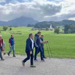 „Da könnte ich länger bleiben“ – das waren die ersten Worte als der vormalige Bundesverkehrsminister Alexander Dobrindt und Vorsitzende der CSU-Landesgruppe im Deutschen Bundestag auf Einladung der Rosenheimer Bundestagsabgeordneten Daniela Ludwig in Schilding auf dem Samerberg aus seinem Auto ausstieg. Gemeint waren dabei die rundum sommerlichen und einladenden Landschaftsstimmungen der Wanderregion Samerberg mit der Hochries als Ausflugsberg und das passende Ausflugswetter. Begrüßt wurde der CSU-Politiker unter anderem von Landtagsabgeordneten Klaus Stöttner, von Landrat Otto Lederer und von Samerbergs Bürgermeister Georg Huber. Die von Daniela Ludwig vorbereitete Wandertour führte vorbei an der Hofkapelle der Bauersfamilie Mayer hinauf zur Dandlbergalm mit herrlichem Inntal-Blick. Bei der Alm kam es dann zu den politischen Gesprächen, natürlich durfte dabei auch der Brennerbasistunnel und dessen Planungen nicht fehlen.
