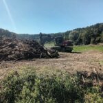 Aufräumarbeiten 2: Ein Bagger räumt das Treibholz vom Uferweg und stapelt es zu einem großen Haufen. Foto: Wasserwirtschaftsamt Traunstein