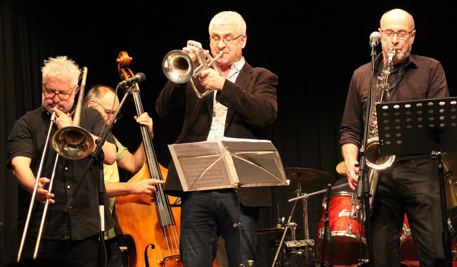 Kompakte Bläsersätze und versierte Soli (v.l.n.r.): Bruno Backes (Posaune), Bernhard Gierlinger (Flügelhorn), Robby von Siemens (Tenorsax)