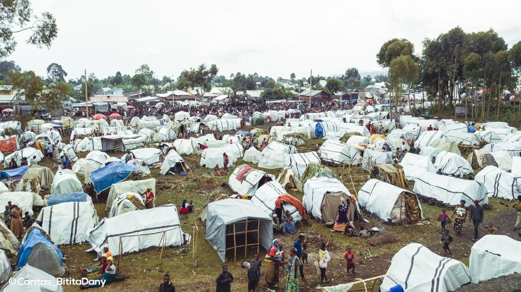 Aus der Not geboren: Improvisiertes Flüchtlingscamp bei Goma/Nordosten der DR Kongo. Hunderttausend haben dort Zuflucht gesucht. Foto: Bitita Dany/Caritas Goma