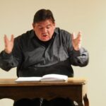 Im ersten Teil trug Klaus Wittmann die unterschiedlichsten Charaktere der Bairischen Gauklerkomödie „Astutuli“ mit verschiedenen Stimmlagen so vor, als ob ein komplettes Theaterensemble samt Chor und Orchester auf der Bühne stand, obwohl er ganz alleine an einem Tisch saß. Dieses zeitlose Stück zeigte dem Publikum die Welt der Superschlauen auf, welche sich gegenseitig über den Tisch ziehen, ohne es rechtzeitig zu merken. Im zweiten Teil folgte mit der „Bernauerin“, die bekannte Liebestragödie aus dem 15. Jahrhundert des bayerischen Herzogsohns Albrecht und der Augsburger Baderstochter Agnes Bernauer. Auch hier hörte man die galoppierenden Pferde (mittels Trommeln auf dem Tisch) ganz deutlich genauso wie das Plätschern der Donau bei Straubing, in der Agnes im Auftrag von Herzog Ernst als Hexe ertränkt wird. Und schließlich verstummten die immer wiederholenden lauten Schreie Albrechts nach Agnes, Agnes, Agnes…, als der Tod seines Vaters verkündet wird. Die einzelnen Szenen – so grandios vorgetragen – erschienen wie ein Film vor den Augen der Zuhörer. Auch wenn man sich in die Sprache der Stücke vielleicht erst ein wenig hineinhören musste, wurde von Wittmann eine Klangwelt wie gesprochene Musik auf die Bühne gezaubert.