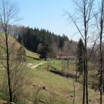 Zurück geht es wie beim Aufstieg bis zum Hochplatten-Hauptweg, auf dem wir vorbei an der Naderbauernalm und Staffnalm zur Rachlalm absteigen. Unterhalb der Staffnalm passieren wir die Startrampe der Gleitschirm- bzw. Drachenflieger und die Bergstation der Hochplattenbahn (1040 m), dann biegen wir links ab und erreichen über einen Wiesenrücken, bei dem es sich übrigens um eine ehemalige Skipiste handelt, die Rachlalm.