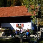 In der Rachlam kehren wir ein. Auf der Terrasse bietet sich uns ein schöner Ausblick hinüber zum Hochgern und die große Auswahl an selbst hergestellten Brotzeiten und Kuchen lassen nichts zu Wünschen übrig. Von der Rachlalm wandern wir dann gemütlich und aussichtsreich über grüne Almwiesen hinüber zur Hufnagelam und Pelzenalm und steigen dann steil auf Serpentinen durch Mischwald hinunter zum Ausgangspunkt.