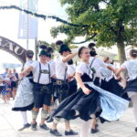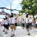 Zum Auftritt im sonnigen Biergarten kamen die aktiven Dirndl und Buam sowie die Goaßlschnalzer vom Trachtenverein „Daxenwinkler“ Atzing. Der Kontakt entstand im Vorjahr als die Atzinger beim Erntedankfest von Bad Gögging in der Hallertau auftraten. Begleitet wurden die Atzinger von der 24 Frauen und Männer starken Musikkapelle Samerberg.