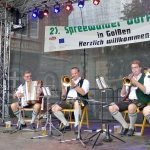 Bayerische B lasmusik und Spreewälder Gastfreundschaft passten auch heuer wieder bestens zusammen als die Chiemgauer Biergartenmusi aus dem Rosenheimer Land beim 21. Gurkentag in Golßen im Spreewald unterwegs waren. Eingeladen hierzu hatte zum wiederholten Male der Spreewaldverein als Veranstalter der Gurkentage, die an zwei Tagen rund 10.000 Besucher aus dem Land Brandenburg haben. Während die Anbietergemeinschaft Urlaub auf dem Bauernhof für die Tourismusregion Chiemsee-Alpenland an einem Informationsstand Werbung machte, spielten die Blasmusikanten unter der Leitung von Rudi Piezinger auf der Hauptbühne und auf der Bühne am Lindenplatz an zwei Tagen zur Unterhaltung auf. Belohnt wurden die Musikanten und die Touristiker für ihre Fahrt in den Spreewald mit einer abendlichen und musikalisch gestalteten Kahnfahrt mit Halt auf der Insel in Lübben und mit dortigem kurzen Standkonzert beim Gurken Paule.