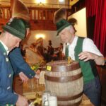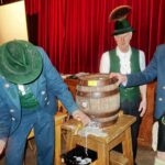 Etwas umfangreicher ging es bei einer zweiten Bewerbung an diesem Abend zu. Marianne Jauernig, Vorständin vom Trachtenverein Chiemgau-Feldwies gab bekannt, dass ihr Trachtenverein im Jahr 2026 120 Jahre alt wird. „Da 2026 der Chiemgau-Alpenverband aber 100 Jahre alt sein wird, wird im Sitz des Gaues in Marquartstein das Jubiläums-Gaufest gefeiert werden. Wir wollen uns deshalb um die Ausrichtung des Gaufestes 2025 bemühen“. Während die Vorständin noch ausführte, dass das Gaufest-Motto 2025 „A scheene Zeit mit guade Leit“ lauten wird und der Gauvorstand abstimmen ließ, lagen auf der Bühne vermeintlich schlafende junge Feldwieser Trachtlerbuam in Liegestühlen. Als dann ein einstimmiges Votum von den Delegierten kam, brach ein riesiger Jubel bei den Gastgebern aus und die Buam sprangen zum „Feldwieser Plattler“ auf. Für Bürgermeister Herbert Strauch, der selbst Vorstand beim Bruderverein „D´Buchwäldler“ Übersee ist, war der Zeitpunkt guter Anlass, um die Unterstützung der Gemeinde für den Gauverband und für den Feldwieser Trachtenverein zuzusagen. „Wir haben in der Feldwies und in Übersee zwei starke Trachtenvereine freuen wir uns auf gemeinsam auf ein schönes Gaufest bei uns am Chiemsee“ – so der Bürgermeister zu den Gauvorständen Thomas Hiendl aus der Feldwies und Lisbeth Tengler aus Übersee. Und damit der jubilierenden Stimmen nicht eintrockneten, zapfte der Bürgermeister zusammen mit Zweitem Trachtenvorstand Hans Scheck gleich ein Faß Bier an – und die Gaufestvorbereitungen Chiemgau-Feldwies 2025 nahmen ihren Lauf.