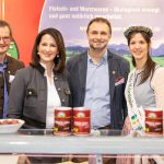 Foto Seyfarth / StMELF – zeigt (v.l.) Hubert Heigl (Vorsitzender der Landesvereinigung für ökologischen Landbau), Ministerin Michaela Kaniber, Geschäftsführer Tim Reiter und Bio-Königin Carina Bichler