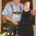 Passend zu seiner Leidenschaft, Kindern und Familien in Rumänien zu helfen, stellte er bei seiner Geburtstagsfeier eine Bananenschachtel als Spendenbox auf. „Die Bananenschachteln sind mein Erkennungszeichen, ich selber habe alles, was es zum zufriedenen Leben braucht, mit den Spenden kann ich wieder LKW-Fahrten finanzieren“, so Hans Alt, der nach seiner Feier zum 80. Geburtstag weiter unterwegs ist, um für die Rumänienhilfe zu sammeln. Unter den vielen Gratulanten waren auch Schwester Dominica Eisenberger, Generaloberin der Franziskanerinnen von Au am Inn, die Schwestern Gabriele Gruber, Sr. Annunciata Unterrainer, Wegbegleiterinnen der ersten Stunde, Sr. Ludowica Erb Hausoberin von Ramsau, sowie Sr. Georgine und Sr. Katharina vom Kloster Ramsau.