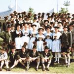Das Gruppenbild: 2. Reihe von unten, rechts außen: der damalige Gauvorstand des Gauverbandes I, Paul Gambs aus Inzell, eine Reihe darüber rechts außen der damalige Gauvorplattler und Landesvorplattler Alfons Plereiter aus Ruhpolding.