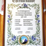 Bei der Andacht in der Kirche mit Diakon Heiko Jung waren neben den Mitgliedern des Gauausschusses auch die Ehrenmitglieder des Verbandes und die 1984 in Bernau geweihte Standarte zugegen. Anschließend erfolgte ein Gedenken am Grab des Gründungs-Gauvorstandes Hias Schrobenhauser aus Marquartstein. Dabei erinnerte Gauvorstand Thomas Hiendl daran, dass es neun Gründervereine am 22. August 2026 gab, dies waren Marquartstein, Schleching, Unterwössen, Oberwössen, Hohenaschau, Niederaschau, Staudach, Grassau und Bernau. Zu Ehren der Gründerväter und aller bisher verstorbenen Trachtenkameraden legte Thomas Hiendl einen Latschenstrauß nieder. Dem kirchlichen Teil folgte noch ein gemütliches Beisammensein im Gründungslokal Hofwirt mit der Gruppe “Chiemgauer Sänger”u. a. mit Gaumusikwart Leonhard Meixner. Bei diesem gemütlichen Beisammensein im Beisein kleiner Abordnungen aus den inzwischen 23 Gauvereinen überreichte Gauvorstand Hiendl an die Gründervereine eine Ehren-Urkunde, deren Gestaltung an die Originale der Gründung angelehnt waren.