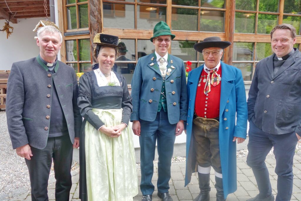 Von links: Pfarrer Martin Strasser, stv. Gauvorständin Lisbeth Tengler, Gauvorstand Thomas Hiendl vom Chiemgau, Gauvorstand Horst Müller vom Altbayerisch-Schwäbischen Gauverband, Pfarrer Gottfried Grengel.