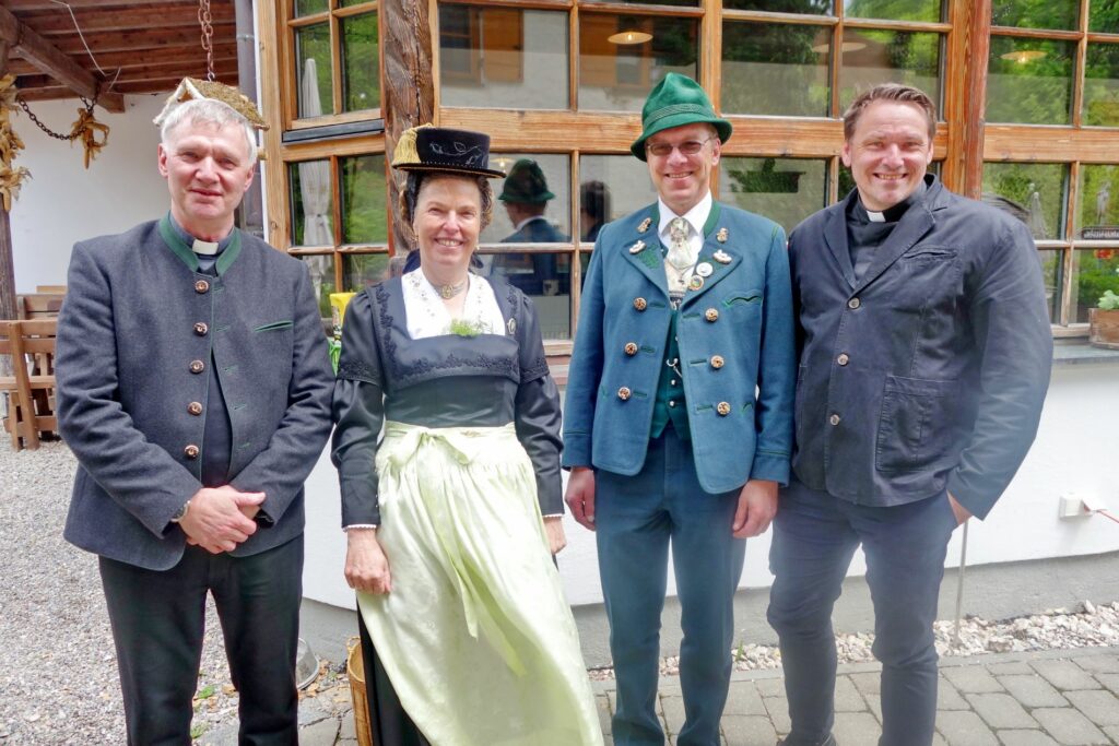 Von links: Pfarrer Martin Strasser, stv. Gauvorständin Lisbeth Tengler, Gauvorstand Thomas Hiendl vom Chiemgau, Pfarrer Gottfried Grengel.
