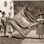 Repros: Hötzelsperger – Fahnenweihe 1950 von links: Hans Vordermayer (Siegl), Hans Pertl (Stockhammer), Fahnenbraut Anneliese Vordermayer (Pletzenauer), Fahnenmutter Irene Pertl (Linnerin) und Vorstand Simon Bauer.