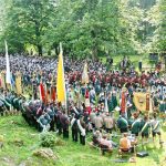 Fahnenbegleiter und Fahnenstangenbruch bei der Fahnenweihe 1950