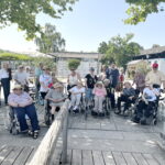 IMG_4560: Mitarbeiter Kursana und Bewohner/Innen im Rollstuhl warten am Steg um auf die MS Josef zu dürfen.