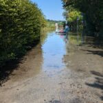 Radfahrer müssen momentan noch mit Umleitungen rechnen. Wer sich nicht an die Schilder hält, steht schnell knöcheltief im Wasser. Das kann je nach Tagesform entweder eine willkommene Abkühlung oder eine nasse Überraschung sein.