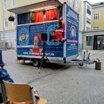 Pandemiebedingt trat der Kasperl erstmals am Weihnachtstag im Freien auf. Der gemeinsame Pausenhof der Priener Realschulen war dabei die optimale Spielstätte, weil doch der größte Teil des Sitzplatzbereiches überdacht ist. Und die Vorstellung war auch bis auf den letzten Platz gefüllt.
