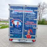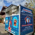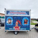 Schon lange träumte Mikat von einer mobilen Kasperlbühne, mit der er von Ort zu Ort ziehen kann. Dieser Tage wurde der als „Kasperlburg“ beklebte Bühnenanhänger ausgeliefert. Dazu gehören auch ein Zelt und entsprechende Sitzgelegenheiten für bis zu 50 Personen mit Mindestabstand.