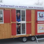 Einen festen Standplatz in der Nähe von Prien hat dagegen der Kinder-Zauberwelt-Bauwagen, den Stephan Mikat ebenfalls kindgerecht ausbauen ließ. Hier wird Kathy Puchalla nach dem Ende des Lockdowns Kinder-Geburtstagsfeiern, Puppentheater-Vorstellungen und Erzähltheater mit selbst geschriebenen Geschichten anbieten. Ebenfalls in Planung ist eine Natur-Kindergruppe mit der ein Elfen-Garten gestaltet werden soll.