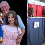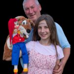 Bildunterschrift: Am 6. Mai 2018 (hier das Premieren-Plakat) spielte das Chiemsee Kasperltheater erstmals öffentlich im Priener Chiemsee Saal. Oberkasperl Stephan Mikat (hier mit seiner damals 7jährige Tochter Denise und einer aktuelle Aufnahme) hat seitdem knapp 600 Vorstellungen gespielt und das Hobby zum Beruf gemacht.