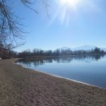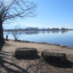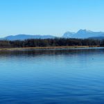 Wir starten am Parkplatz am Anfang der Julius-Exter-Promenadein Feldwies, gehen am an Wochenenden und in der Saison immer überaus belebten, heute aber menschenleeren Seeuferentlang bis zur Badeanstalt. Ab hier schlängelt sich ein wunderschöner schmaler Weg dam Chiemseeufer entlang. An den sonnigen Buchten liegen die ersten Sonnenanbeter am Strand. Mehrere sonnige Bänke mit schönem Blick auf den See oder in die Berge laden zum Verweilen, was wir gerne machen. Nach einem kleinen Picknick gehen wir weiter vorbei an der Nikolauskapelle bis zum Aussichtsturm Lachsgang. Wir steigen hinauf und beobachten die zahlreichen Wasservögel auf der gegenüberliegenden Seite der Bucht.