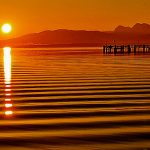 Es ist schon bezaubernd, wenn man bereits um 6 Uhr morgens auf und über den Chiemsee schaut. Die ersten Strahlen des Sonnenaufgangs tauchen das Bayerische Meer in eine außergewöhnliche Farbkomposiition, die alledings nur kurz anhält. Deswegen gilt es nach wie vor, dass Morgenstund Gold im Mund hat.