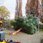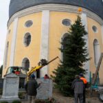 Jetzt war es wieder so weit: Der Christbaum an der Rundkirche St. Johann Baptist und Heilig Kreuz im Rosenheimer Stadtteil Westerndorf am Wasen wurde aufgestellt! Es ist das dritte Jahr, in dem ein Baum den Friedhof ziert – neben den beiden bewährten, geschmückten Bäumen zu Weihnachten am Hochaltar im Inneren der Kirche. Erstmals begonnen damit in der Corona-Zeit, hat sich schon (fast) eine neue Tradition entwickelt.