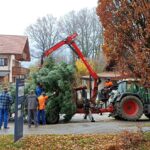 Am Samstag vor dem ersten Advent trafen sich am Vormittag zehn fleißige Helfer, um den in diesem Jahr von Georg Rutz aus Pang gespendeten Baum aufzustellen und mit einem neuen Stern auszustatten. Die Installation der energiearmen Beleuchtung in Form von Lichterketten samt Zeitschaltuhr folgt dann noch am Dienstagvormittag.