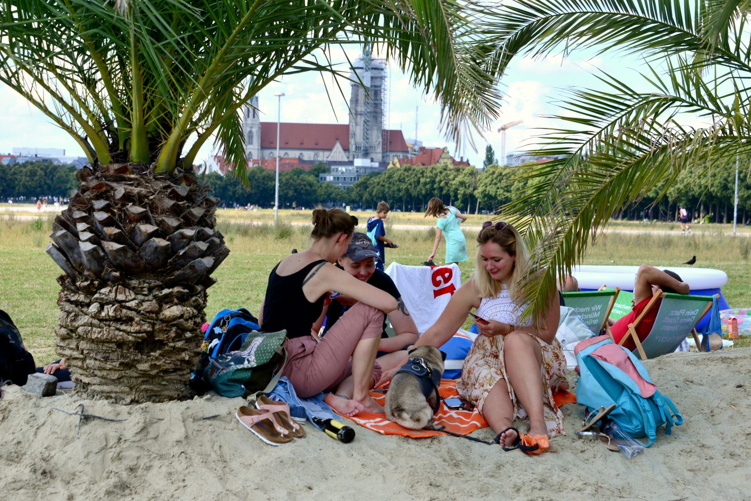 Palmenstrand auf der Teresienwiese Juli 2020 während der Corona Pandemie, in München, Deutschland