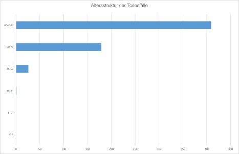 Grafik: Altersstruktur der Todesfälle an und mit COVID-19 seit Pandemiebeginn