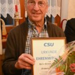 Der Verleihungsbegründung der Vorstandschaft nach, die der Vorsitzende Johannes Weber beim Besuch zitierte, wurde Hermann Minisini maßgeblich aus zwei Umständen heraus die Ehrung der Ehrenmitgliedschaft des Ortsverbandes zugesprochen. Zum Einen hat Hermann Minisini in herausragender Weise die Vereinsstruktur und die Verbandskultur des Ortsverbandes Wössen der Christlich-Sozialen Union in Bayern e.V. gefördert. Zum Anderen hat er einen maßgeblichen Beitrag geleistet zur Etablierung der Zusammenarbeit der sieben CSU-Ortsverbände im Achental, unter anderem mit regelmäßigen Treffen der Vorsitzenden, dabei stattfindendem Meinungsaustausch und stattfindender Diskussion, sowie gemeinsamen Veranstaltungen. Vorsitzender Johannes Weber: “Wir freuen uns, Dich, lieber Hermann, mit Deinen vielfältigen Fähigkeiten bei uns im Verband zu haben und danken Dir herzlich für Dein großes Engagement!”.