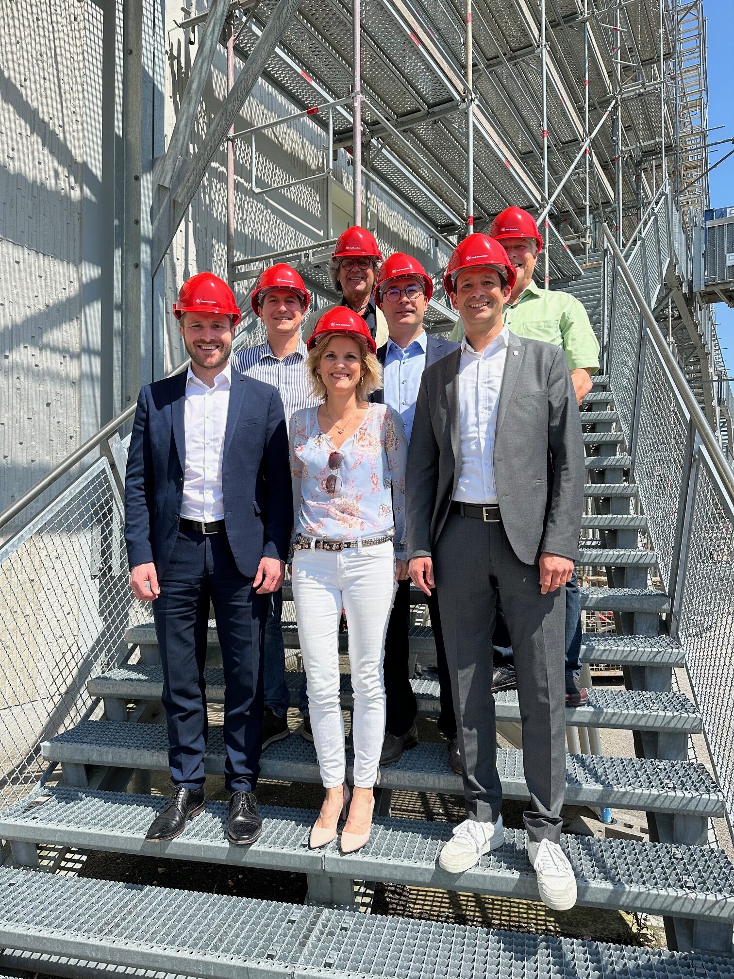 v.l.n.r: beginnend untere Reihe: 2. Bürgermeister Daniel Artmann, Bundestagsabgeordnete Daniela Ludwig, Oberbürgermeister Andreas März, Sachgebietsleiter Sport und Freizeit Christian Weiß, Amtsleiter Zentrales Gebäudemanagement Markus Pletschacher, Projektverantwortlicher Zentrales Gebäudemanagement Thomas Brandlhuber, Leiter Schul- und Sportamt