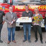 Doppelte Freuden und auch vielfache Gründe zum Danken gab es bei der Feuerwehr in Prien-Atzing. Just am Tag als Rosi Huber, Ehefrau des Ersten Kommandanten der Atzinger Feuerwehr ihren 40. Geburtstag feiern konnte, galt es für ihren Mann Paul das neue Feuerwehrfahrzeug LF 20 Kat S in der Nähe von Linz abzuholen. Getan und Geburtstagsfeier daheim verschoben ging alles seinen Weg. Als nunmehr das 420.000 Euro wertvolle Feuerwehrfahrzeug in Atzing ankam (wir berichteten), da freute sich natürlich auch Rosi Huber. Und besonders überrascht wurde sie mit ihrem Mann auch noch: stellvertretender Kommandant Bernhard Summerer und Anna Boggusch als Leiterin der Jugendfeuerwehr überbrachten vor versammelter Aktiven-Mannschaft nicht nur herzliche Geburtstagswünsche und Blumen für Rosi, sondern auch noch eine von Christiane Huber gefertigte Torte mit dem neuen Feuerwehrauto-Motiv. „Damit wollen wir Dir, Paul und Dir Rosi für all Eure Bemühungen und für all Euer Verständnis danken, denn es war nicht leicht, dass wir nach zwei Jahren der Überlegungen und Planungen ein so wichtiges und neues Löschfahrzeug bekommen“ – so Anna Boggusch und Bernhard Summerer gemeinsam. Die gesamte Aktiven-Mannschaft überreichte noch einen Gutschein für einen Erholungstag in der Therme Erding. Priens Bürgermeister Andreas Friedrich schloss sich den Glückwünschen und dem Dank mit der Überreichung eines Hochalmgold-Flascherls als persönlichen Präsent an. „Wenn wir wieder normal und mehrfach zusammenkommen können, dann feiern wir Auto und Geburtstag nach!“ – so der sichtlich überraschte Kommandant Paul Huber.