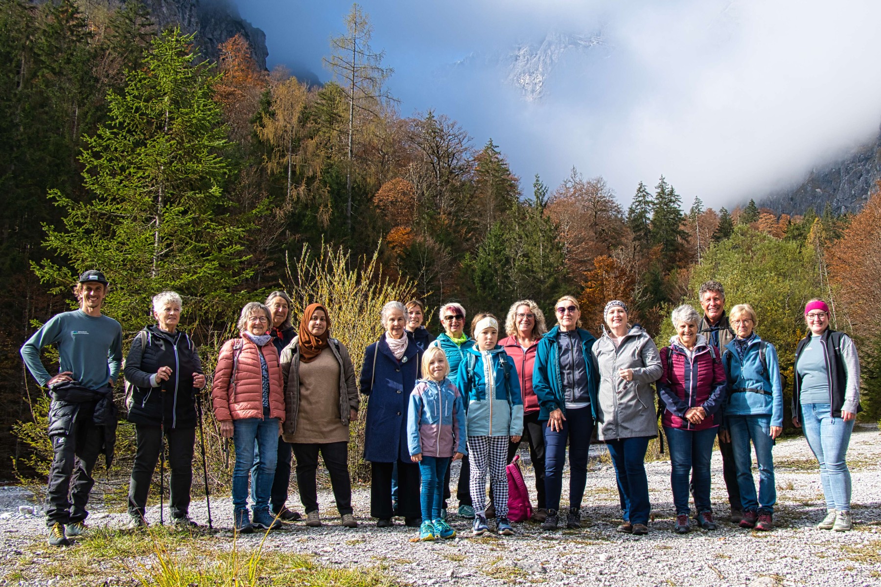 Die Mitarbeiter des Nationalparks (links und rechts im Bild) mit den Ehrenamtlichen vor dem Eisbach auf St. Bartholomä.