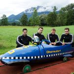 Dadurch ist den vier Jugendfreunden gleich etwas ganz Besonderes geglückt: Sie sind derzeit das einzige Bobteam im ganzen Inntal. Und beim WSV Oberaudorf rannten sie damit offene Türen ein: Schließlich blickt der Verein auf eine lange Bobfahrer-Tradition zurück. So gehört Zweierbob-Fahrerin Ulrike Holzner, Silbermedaillen-Gewinnerin bei der Olympiade 2002 und Weltcupsiegerin 2003, ebenfalls zum WSV. „Diese Geschichte ist wirklich ein Riesenglück für uns. Denn hier ist alles da, was man als Bobfahrer braucht. An der Anschubbahn, die neben dem Sportplatz liegt, steht immer noch die Bob-Garage des Vereins mit allen wichtigen Utensilien und Werkzeugen für den Bob. Das können wir alles voll nutzen.“, so Pilot Johannes.