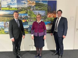 Kooperation zwischen dem Bayerischen Hotel- und Gaststättenverband DEHOGA Bayern und dem Unternehmerverband der Tanzschulen (v. l.): Christoph Möller, Präsident des Unternehmerverbands der Tanzschulen Swinging World, mit DEHOGA Bayern-Präsidentin Angela Inselkammer und Landesgeschäftsführer Dr. Thomas Geppert