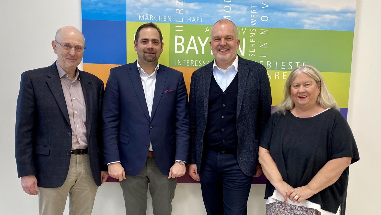 Die neue Spitze der Fachabteilung Systemgastronomie: Karlheinz Reindl von der Rubenbauer Holding GmbH (2. v. r.) und Matthias Seliger, Franchisenehmer der FR L’Osteria GmbH in Amberg (2. v. l.) hier zusammen mit der Vorsitzenden des Fachbereichs Gastronomie Monika Poschenrieder (r.) und ihrem stellvertretenden Vorsitzenden Fritz Kühner (l.).
