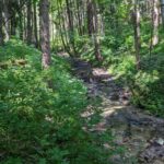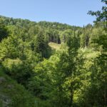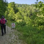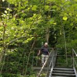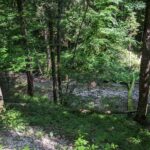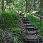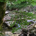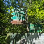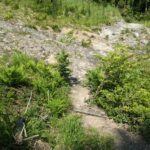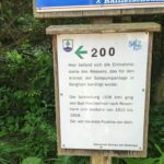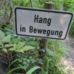 Der Steig durch den Wald ist teilweise beschädigt, ein Steg defekt, ein Warnschild kündet von “Berg in Bewegung”. Wir fühlen uns kurz an den Bergsturz in der Schweiz erinnert – zum Glück ist hier nur der Weg betroffen. Wir umgehen die Stelle problemlos. In Gegenrichtung ist der Weg sogar offiziell gesperrt und eine Umleitung eingerichtet.