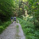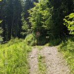 Wir starten unsere Tour bei der Mariengrotte. Von hier geht es gemütlich bergauf – über Kraimoos und oberhalb des Schauergrabens führt der Weg durch schattigen Wald. Der Pfad ist stellenweise beschädigt, doch gut begehbar. Zwei Wanderer überholen uns – die einzigen Menschen, die wir auf der gesamten Runde treffen werden.