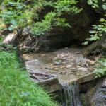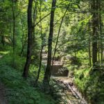 Wir gehem etwa 200 Meter in die Schlucht hinein bis zu einer ehemaligen Wasserentnahmestelle. Von hier wurde einst das nötige Aufschlagwasser zur Solepumpanlage in Bernau-Bergham geleitet. Weiter kommen wir nicht – wir kehren zur Brücke zurück und setzen unsere Wanderung in Richtung Seiseralm fort.